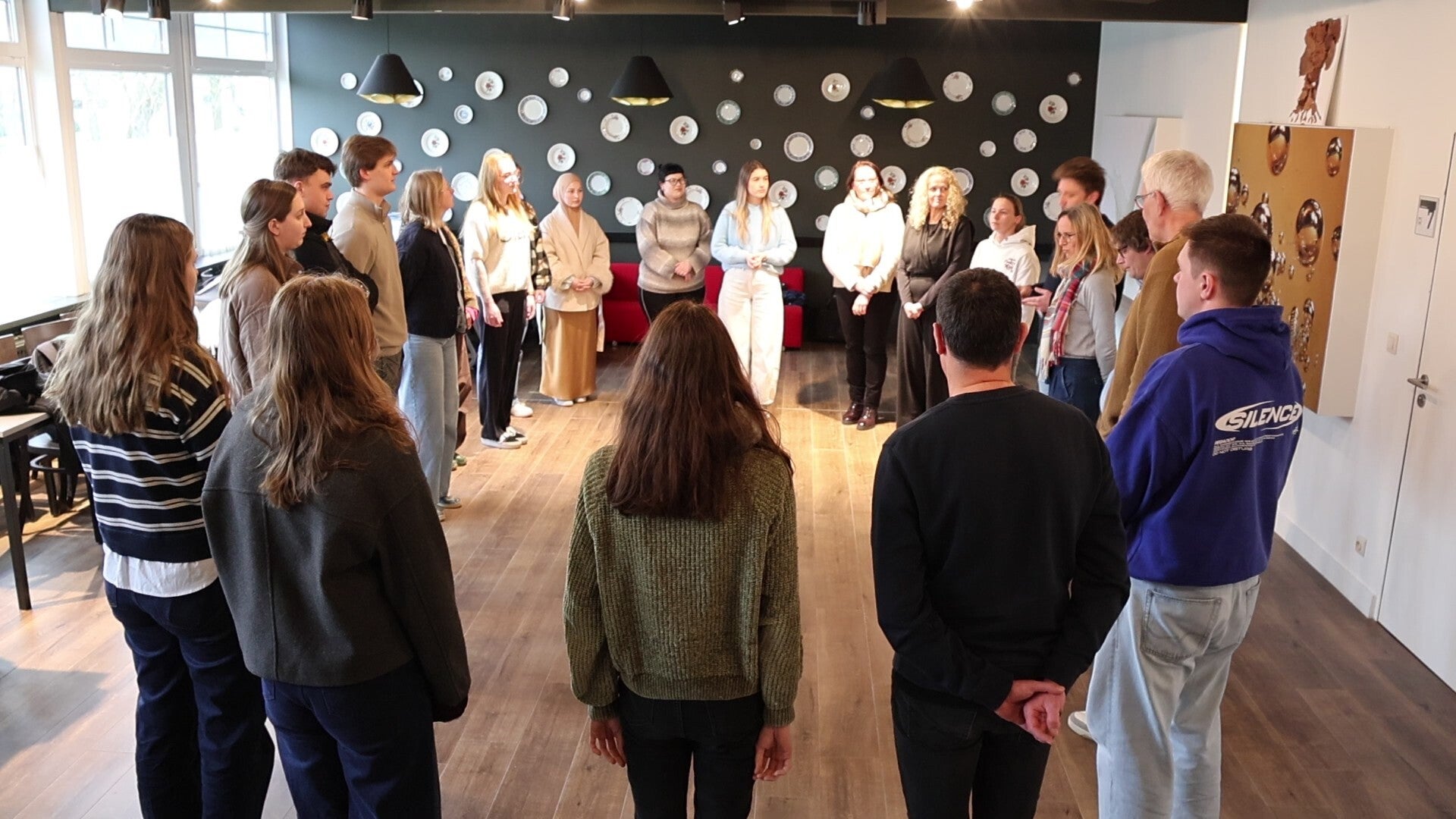 De stilte duurt een paar tellen. Dan zet één persoon een stap naar het midden. Dan nog een. En nog een. Al snel staat de halve cirkel in het centrum. Er wordt niet gesproken, maar de blikken zeggen alles. De eenzaamheid van het conflict lost op in de vaststelling: "Ik ben dus niet de enige." Dit is de essentie van deze 'Step into the Circle'.